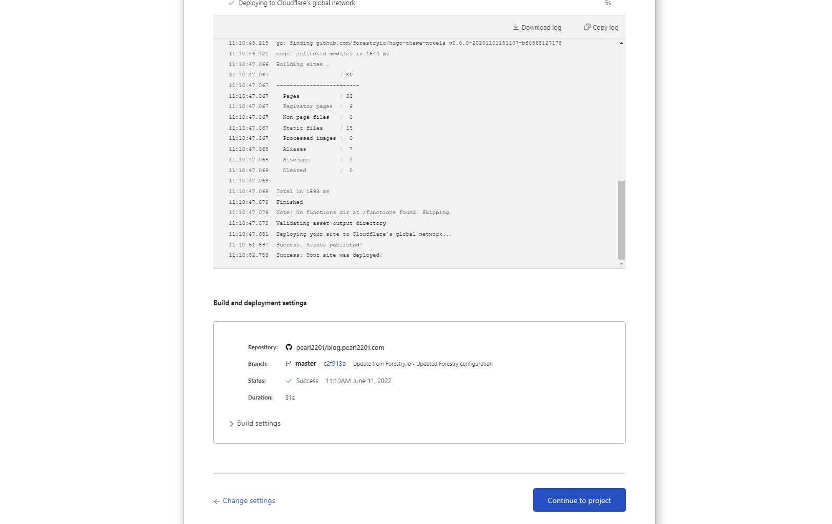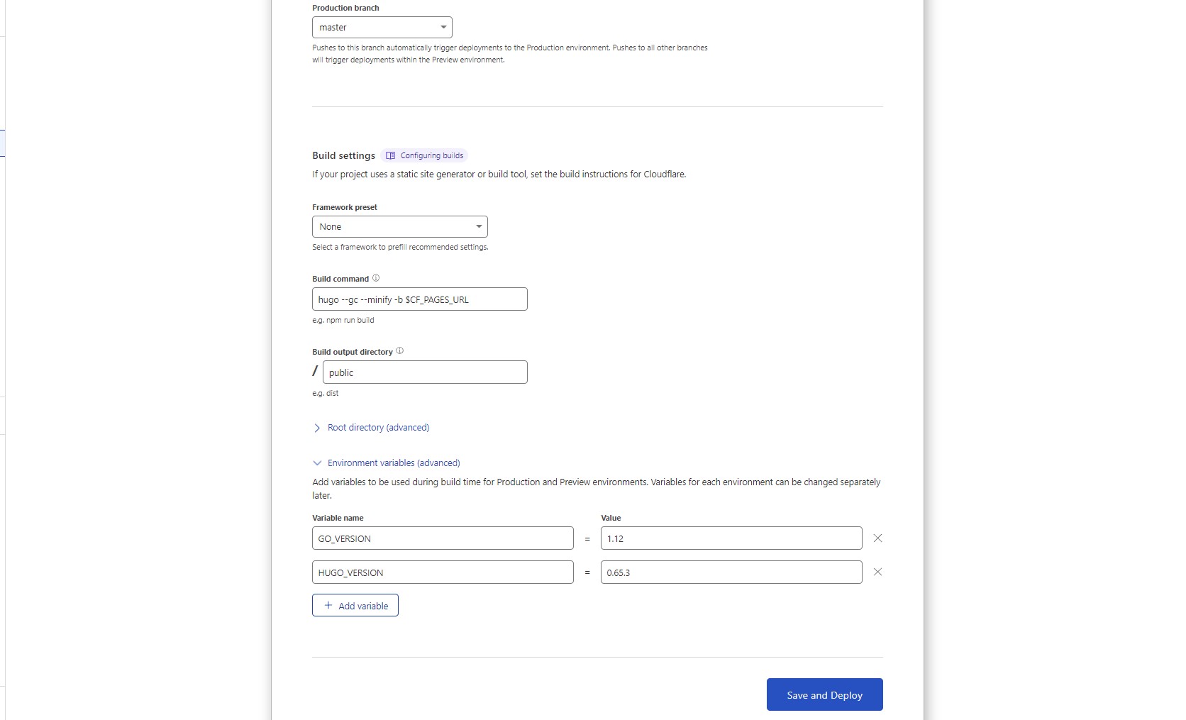 Command build: hugo --gc --minify -b $CF_PAGES_URL