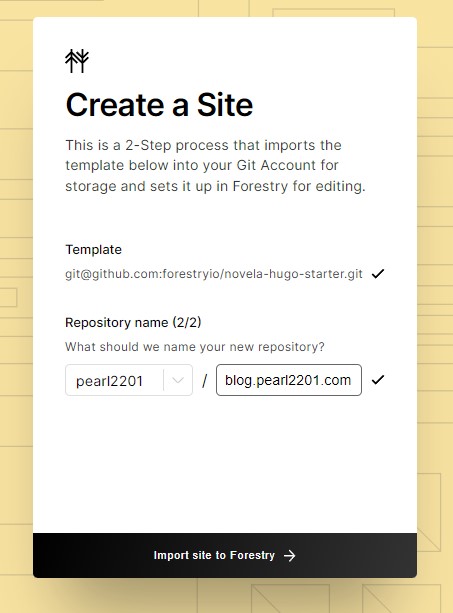 Mình ấn vào “Import to Forestry” để tạo github repository và import vào forestry alt import