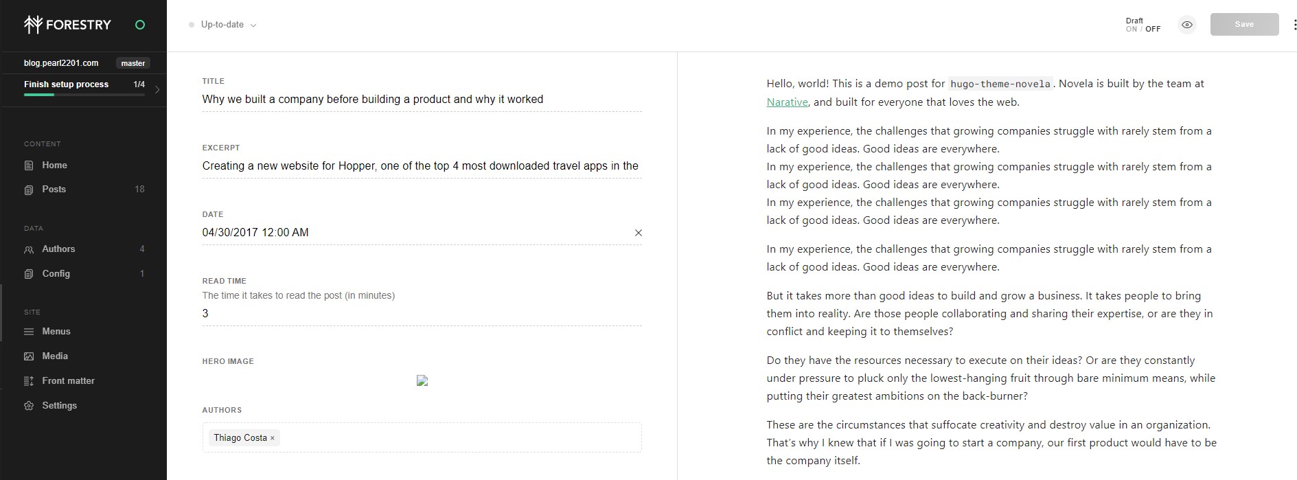 • Để setup theme và viết bài thì mìnha có thể chỉnh sửa trực tiếp trên forestry.io